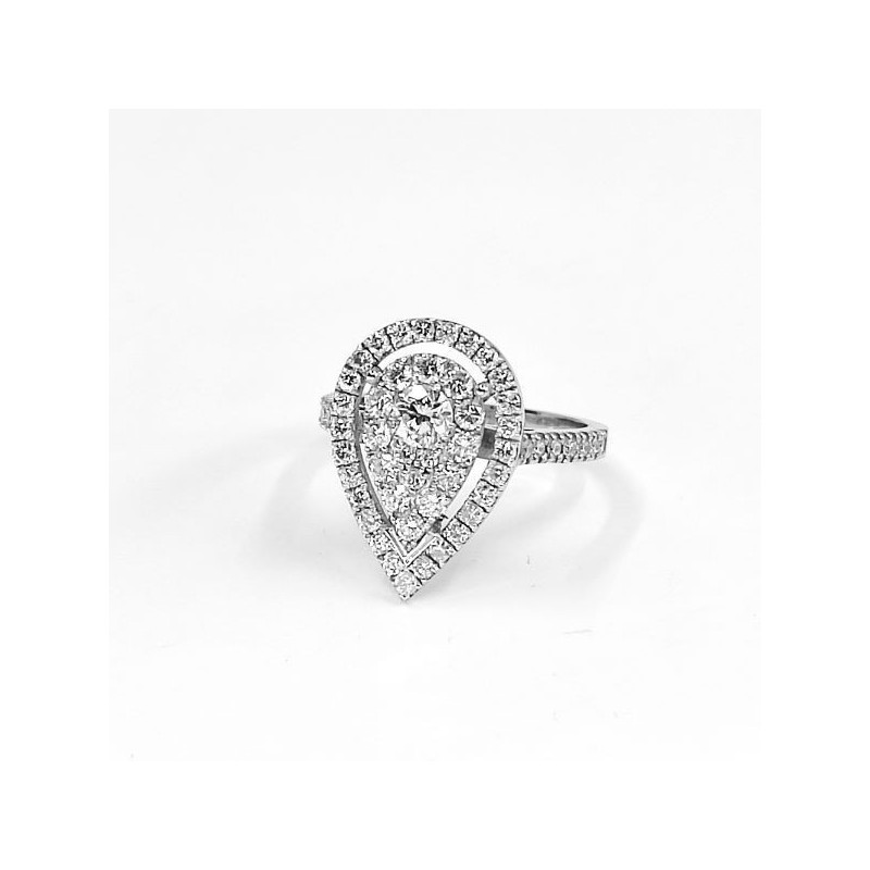 Bague Illusion Goutte. Un diamant central de 0,17 ct avec pavage de 56 diamants pour 0,66 ct - en or 18 carats.