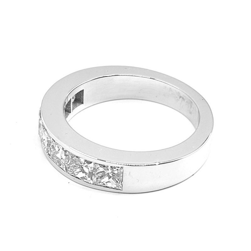 Alliance demi tour serti rail avec 7 diamants de taille Princesse pour 1,75 ct - en or 18 carats.