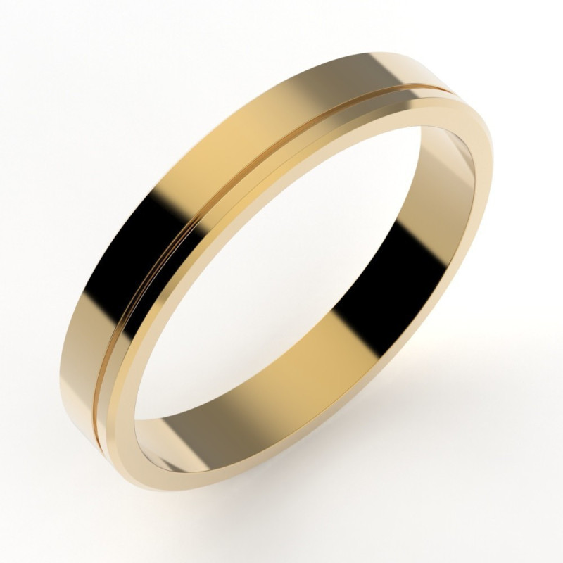 Alliance or Homme Joseph, modèle avec liseré décalé - or 18 carats - En 3,5 mm de largeur.
