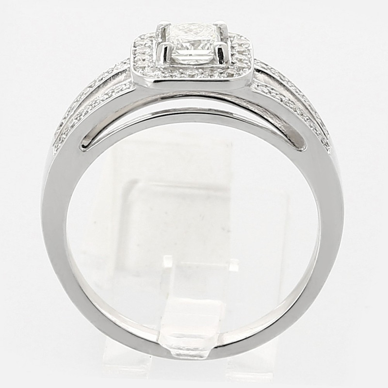 Bague or et diamants Judith. Modèle avec un corp double pavé de diamants. Pierre centrale diamant princesse - en or 18 carats.