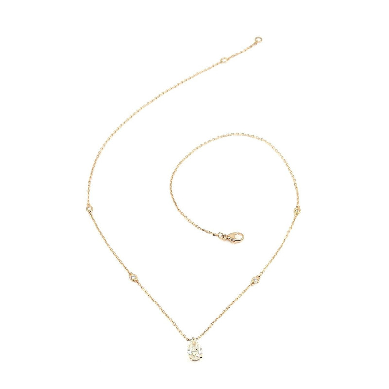 Collier or et diamant Poire 1,07. Modèle avec un diamant de forme poire de 1,07 ct sur une chaine accompagnée de 4 diamants en sertis clos - or 18 carats
