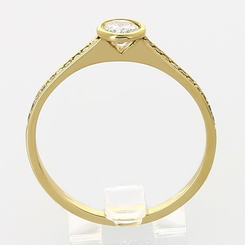 Le solitaire or et diamants Enora est orné d’un diamant rond (Brillant) en serti clos, accompagné de 20 diamants en serti grains. Il existe avec un diamant de poids, couleur et pureté différents.