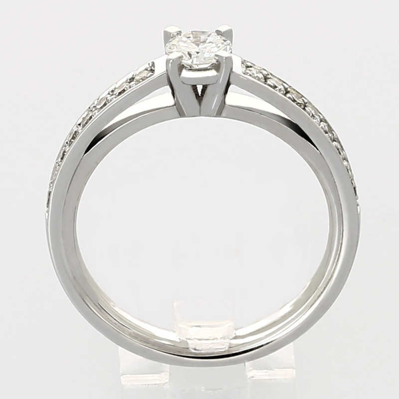 Ce solitaire diamants Diana est serti d’un diamant rond (Brillant) de 0,30 ct GVS2 serti sur 4 griffes avec des diamants sur les côtés. Il existe avec un diamant central de poids, couleur et pureté différents et peut aussi être réalisé sans diamants sur les côtés. Disponible en or blanc, or jaune ou or rose 18 carats.