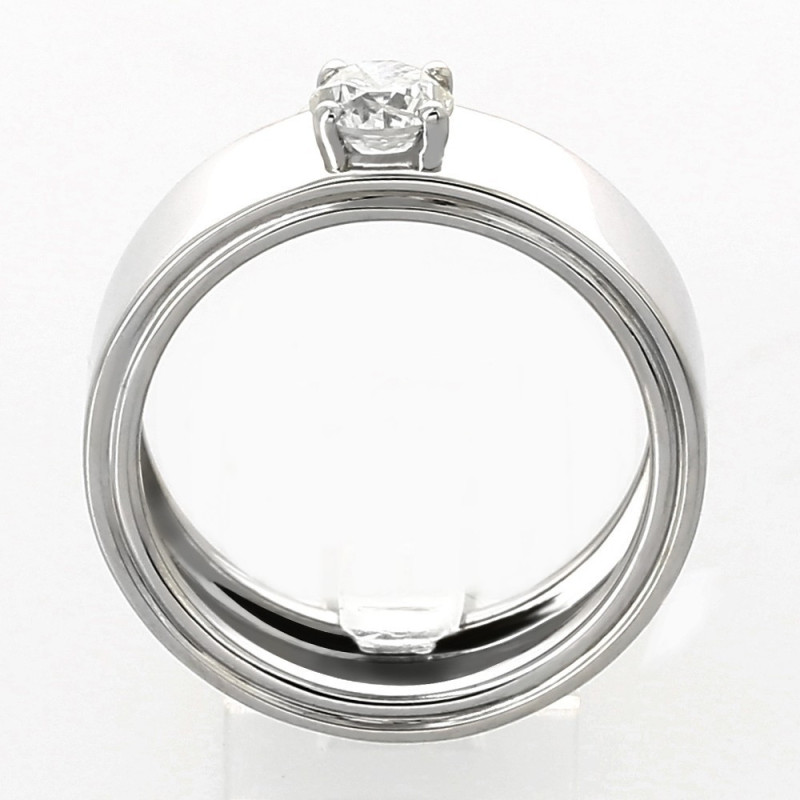Le solitaire or et diamant Angelique est une bague ruban large avec un diamant rond (Brillant) de 0,50 ct  serti sur un chaton 4 griffes.  Il est disponible en or jaune, or blanc ou or rose 18 carats.