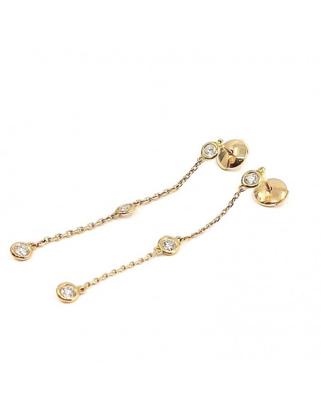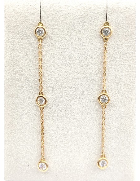 Boucles d'oreilles Pampilles avec 6 diamants de 0,10 ct chacun sur des pampilles en chaine - en or 18 carats.
