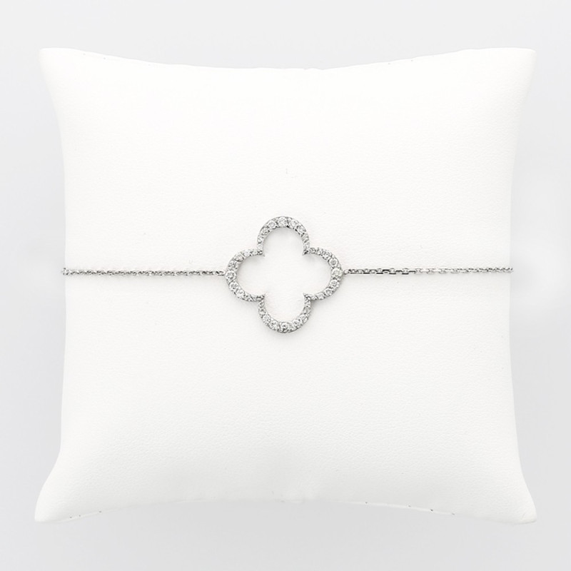 Bracelet diamants Chance. Délicat motif en forme de trèfle serti de 36 diamants sur une chaine maille forçat diamantée - en or 18 carats.